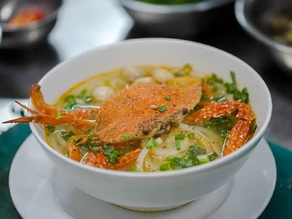 Một tô bánh canh ghẹ “ngập ngụa” toppings sẽ khiến hành trình khám phá của bạn thêm phần tròn vẹn. Sợi bánh canh có màu trắng đục, mềm và dai, ăn cùng với thịt ghẹ xé nhỏ, chả cua, huyết, trứng cút, bề bề (tuỳ quán) và rau sống. Nhiều du khách cho rằng “linh hồn” của bánh canh ghẹ nằm ở phần nước dùng được nấu hơi sệt và thơm lừng mùi hải sản. Bạn có thể chấm bánh quẩy hoặc bánh nổi với nước dùng như một dạng xốt, ăn rất lạ miệng.